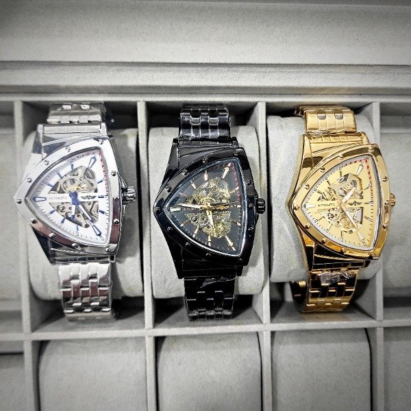 DISEÑO: CAJA TRIANGULAR CON AGUJAS LUMINOSASY CORONA AL DORSO