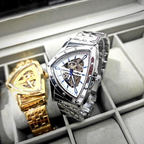 DISEÑO: CAJA TRIANGULAR CON AGUJAS LUMINOSASY CORONA AL DORSO