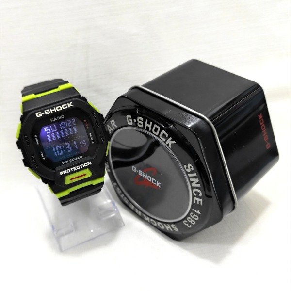 DISEÑO: PANTALLA DIGITAL OSCURA, 4 BOTONES AL DORSO y 1 EN FRENTE INFERIOR PARA SU CONFIGURACION. 4 TORNILLOS VISIBLES EN DORSO. MALLA TEXTURIZADA REGULABLE CON HEBILLA SIMPLE. FONDO COLOR NEGRO. FIRMA EN EL BISEL: G-SHOCK/ PROTECTION