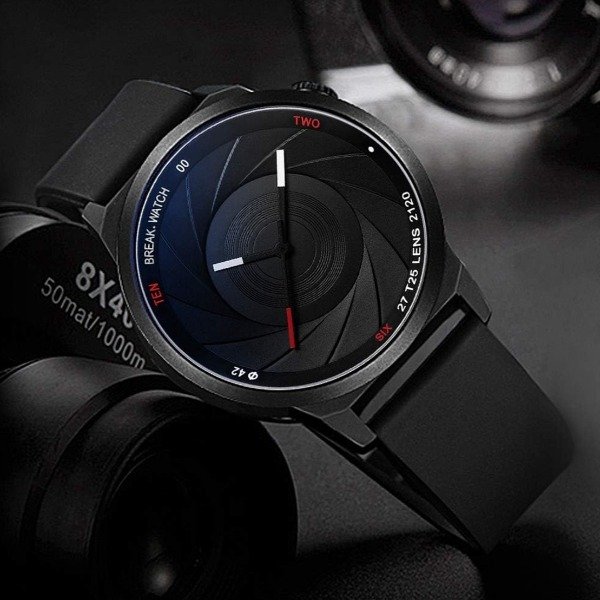 DISEÑO MINIMALISTA DE LENTE DE CAMARA FOTOGRAFICA CON MALLA DE GOMA SILICONA