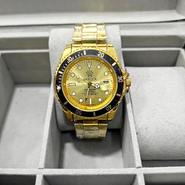 DISEÑO: COLOR DORADO, CON FONDO DE PANTALLA DORADO. CORREA REGULABLE CON HEBILLA MARIPOSA E INDICADORES SIN NUMEROS